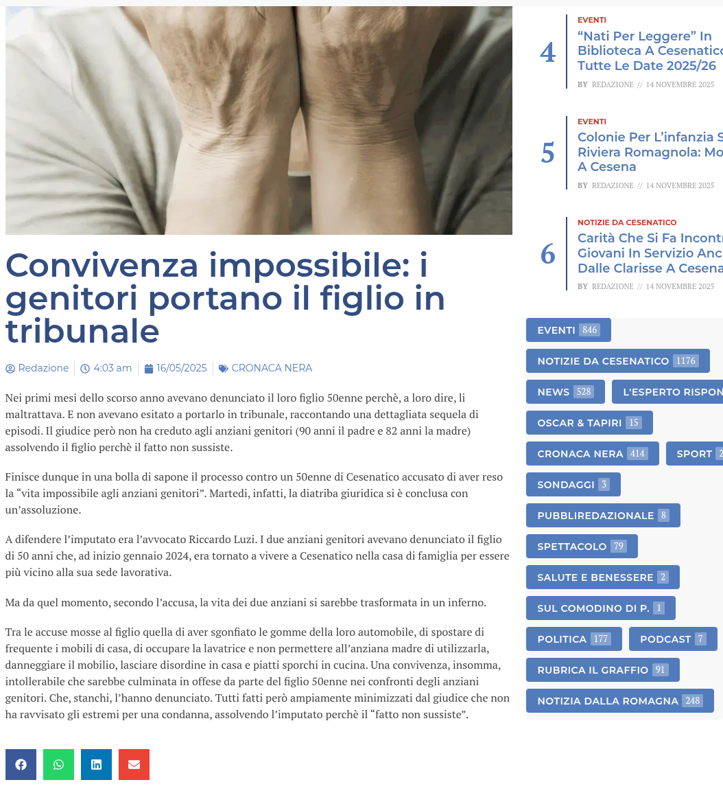 Maltrattamenti: assolto 50enne: “Vita impossibile per i genitori”