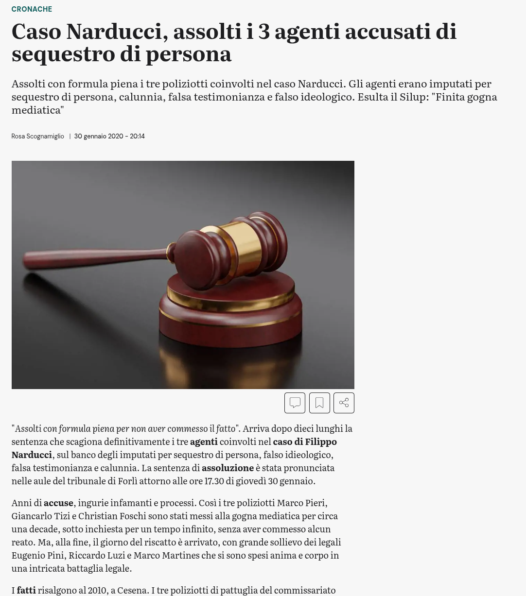 Caso Narducci, assolti in appello i tre poliziotti accusati di sequestro di persona