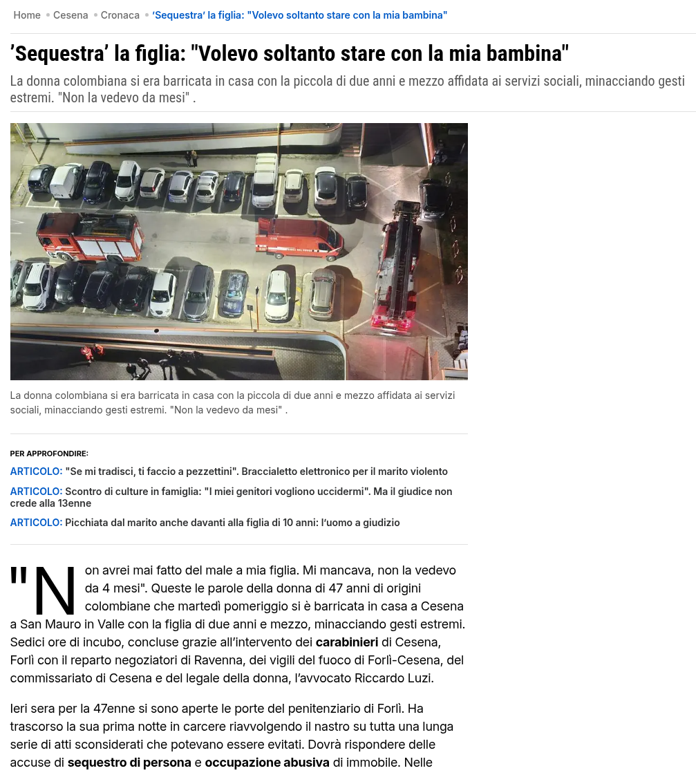 ’Sequestra’ la figlia: “Volevo soltanto stare con la mia bambina”