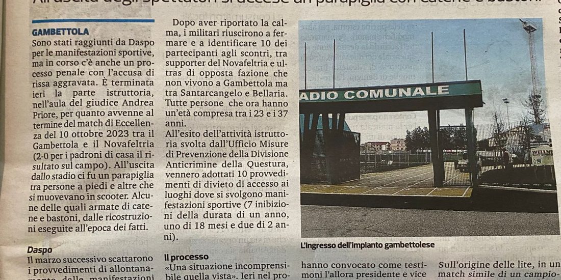Scontri dopo la partita di calcio del Gambettola: in 10 dopo i Daspo a processo per rissa aggravata